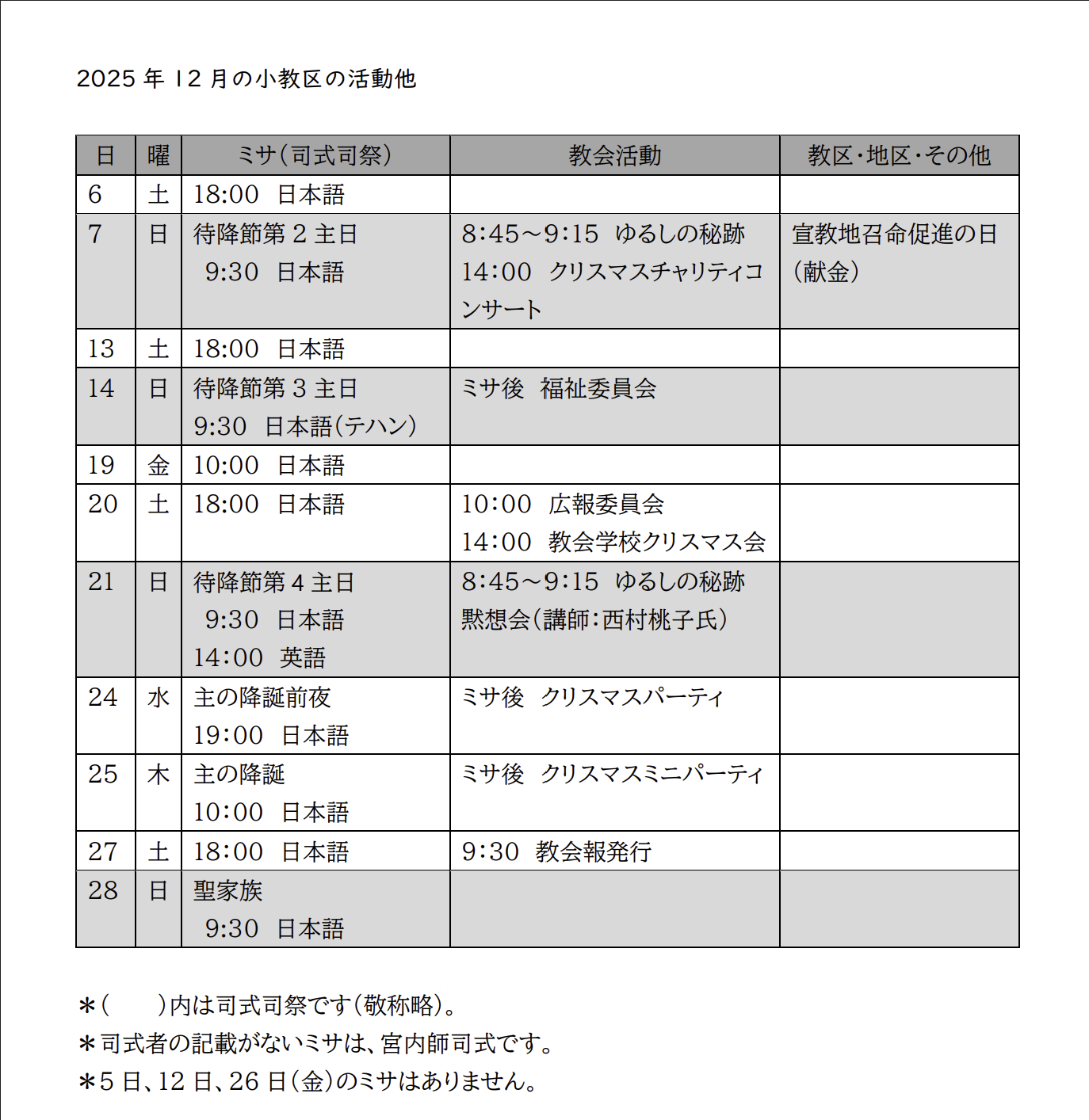 ミサの時間